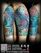 肩膀彩色传统鲤鱼纹身
