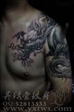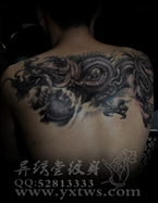 黑白龙纹身背部