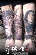 张爱玲纹身黑白包小臂