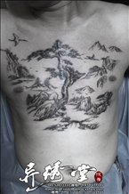 山水画纹身遮盖伤疤
