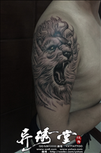 雄狮头像大臂黑白